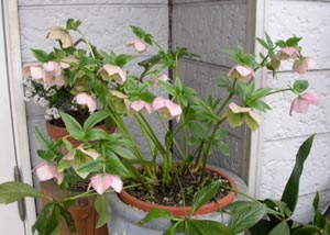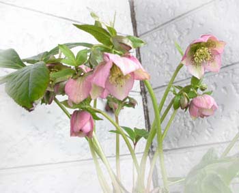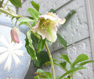 お花が咲いたクリスマスローズを玄関先へ移動しました〜♪